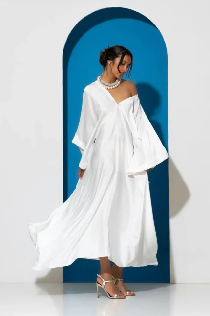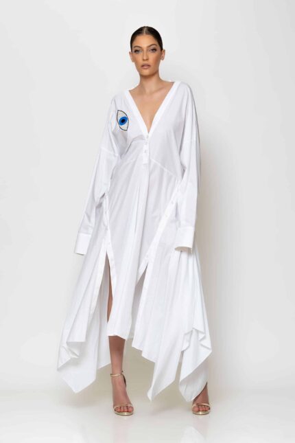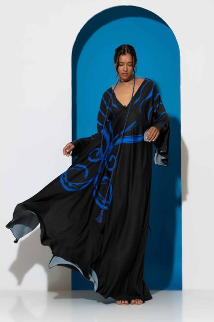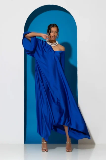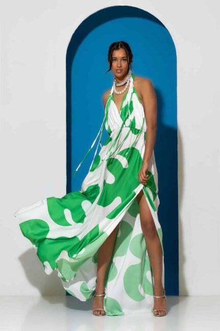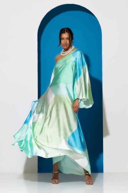 The asymmetrical silhouette and delicate chiffon print elevate every occasion.